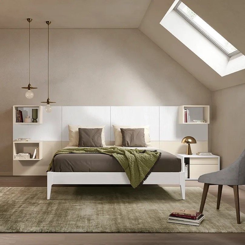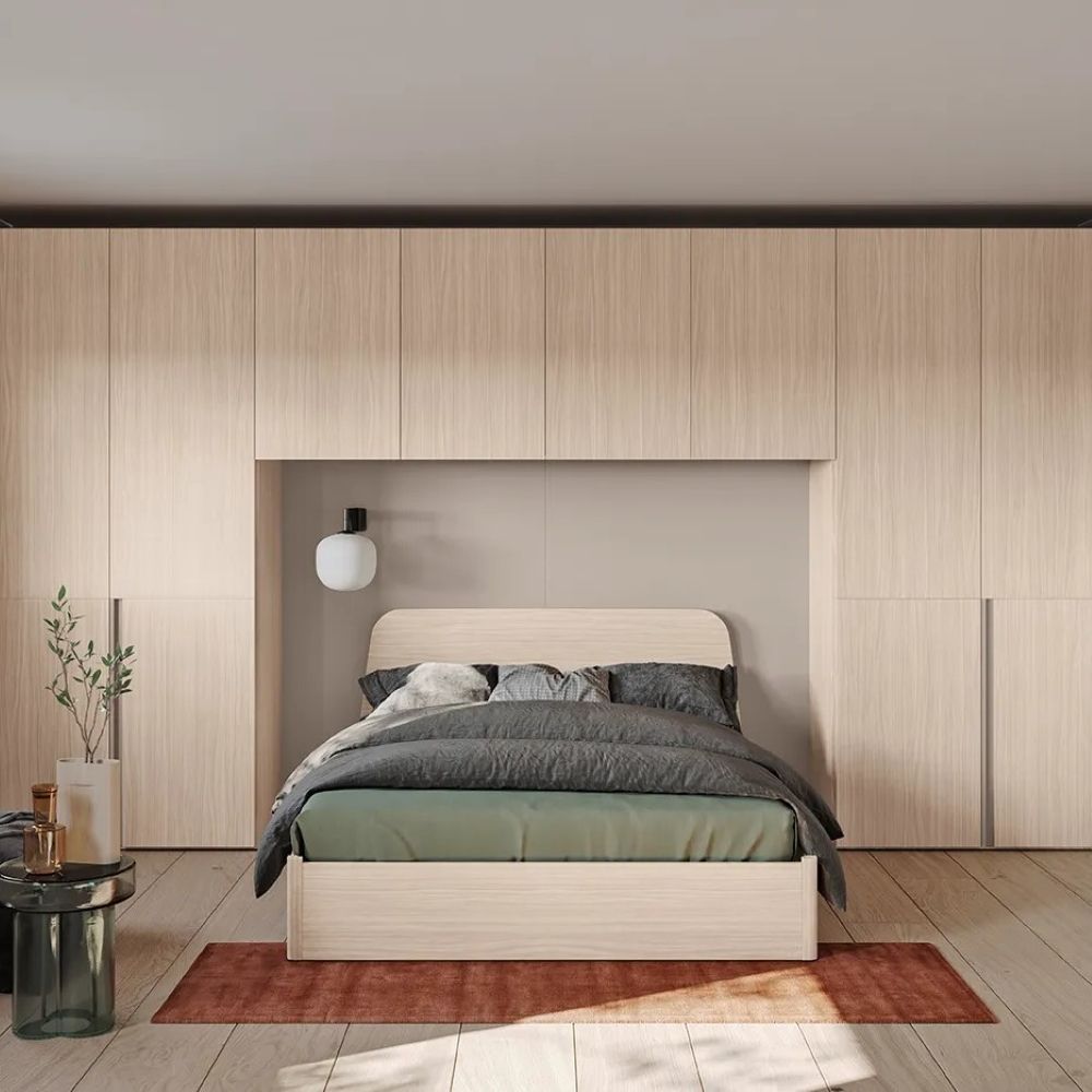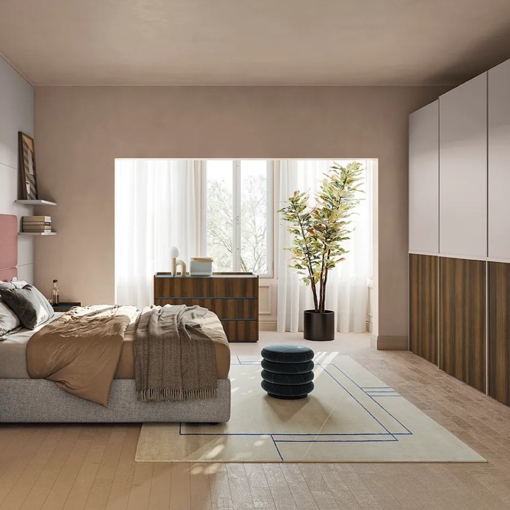 Una camera matrimoniale dal design moderno è l'emblema del comfort e dell'eleganza contemporanea. Caratterizzata da linee pulite e uno stile minimalista, questa tipologia di camera è progettata per ottimizzare lo spazio e offrire soluzioni di contenimento efficienti, adattandosi perfettamente alle tue esigenze. La vasta gamma cromatica, che spazia dai toni luminosi a quelli più intensi, insieme a una ricca selezione di texture, ti consente di creare un'atmosfera unica e rilassante, perfetta per il riposo.