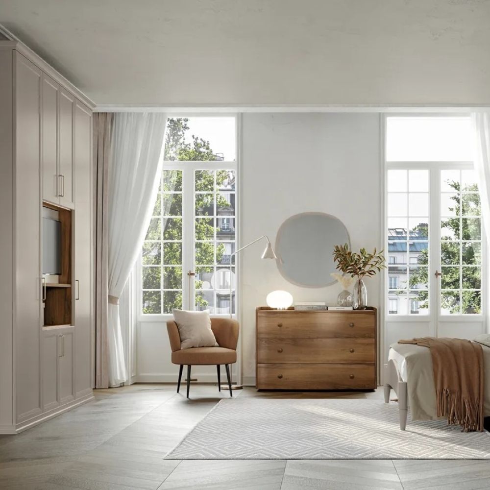 Le camere matrimoniali classiche evocano un'atmosfera romantica e accogliente, grazie all'uso di materiali pregiati come il noce, il legno bianco e l'avorio patinato. Le curve morbide, le finiture dettagliate e l'eleganza intramontabile di questo stile creano un ambiente ricco di fascino e comfort. Nonostante la loro estetica tradizionale, queste camere offrono soluzioni funzionali per mantenere tutto in ordine, senza rinunciare alla capienza e al comfort.